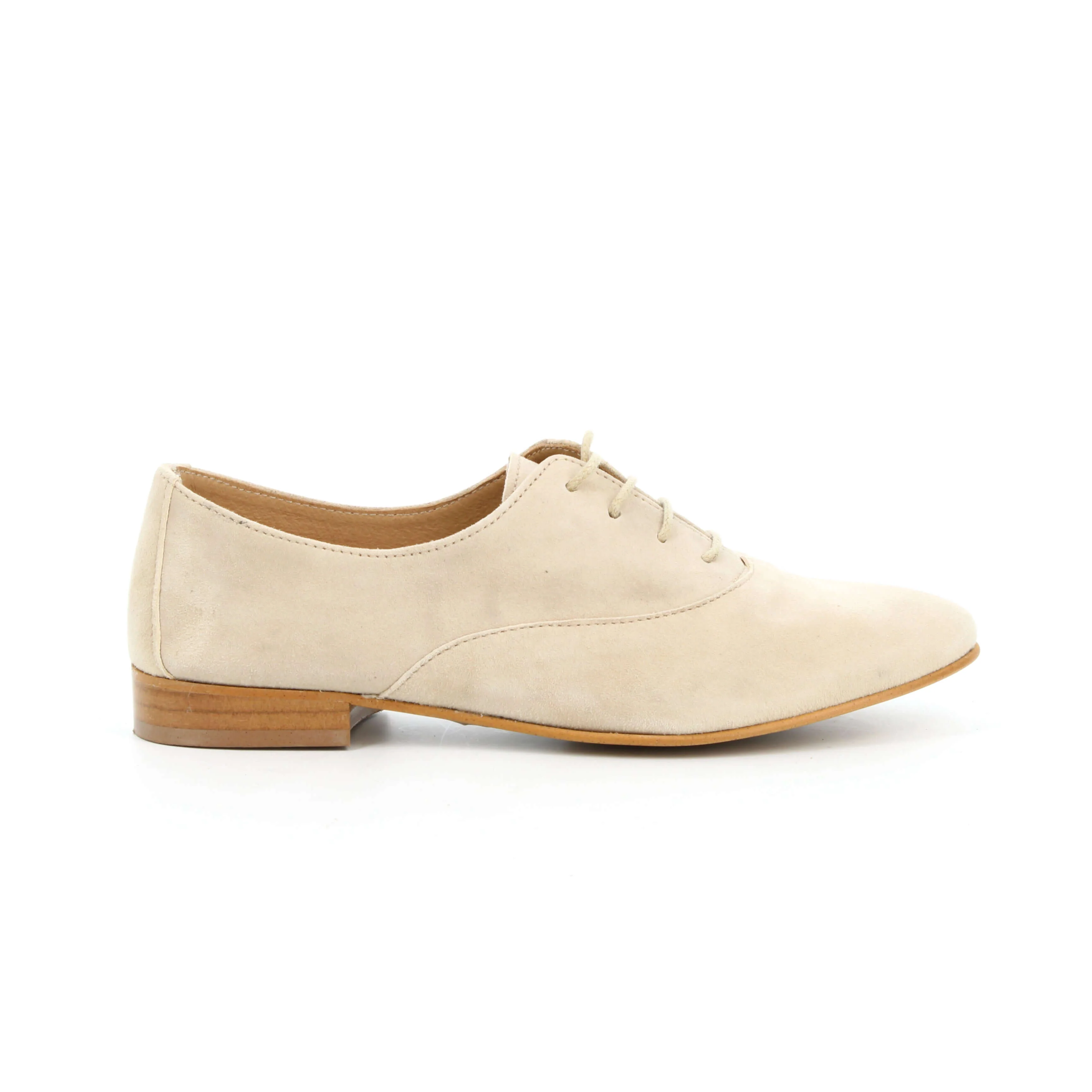Chic et simplicité s’unissent dans le modèle AZUL en croûte de cuir beige crème. Cette chaussure à lacets revisite l’oxford classique avec une teinte douce et lumineuse, parfaite pour les beaux jours. Sa coupe minimaliste et son cuir velouté offrent une silhouette raffinée et épurée. Polyvalente, elle s’adapte aussi bien à un pantalon tailleur qu’à une robe fluide. Un essentiel du dressing féminin, alliant élégance naturelle et confort artisanal.