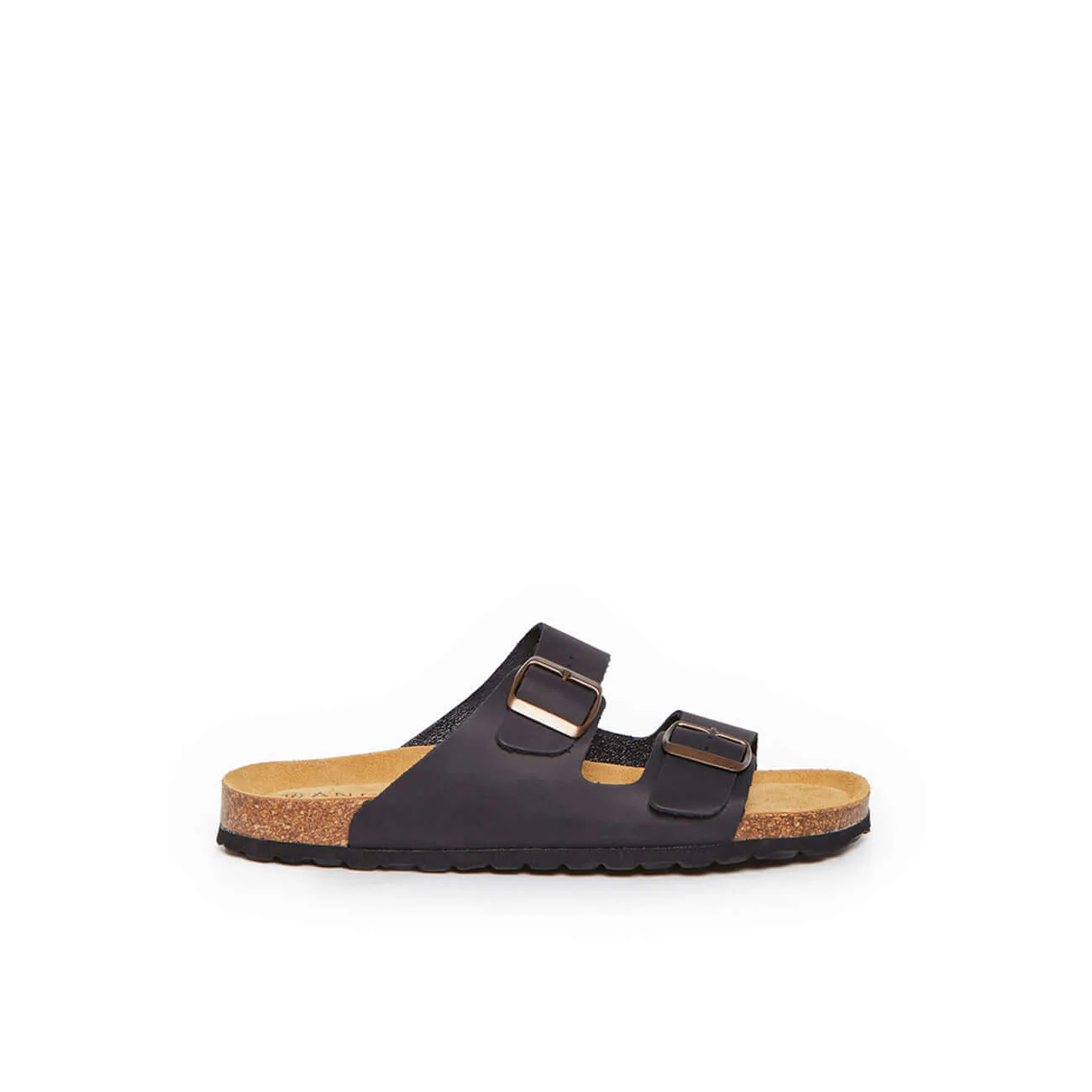 Alliez confort naturel et style épuré avec les sandales FREHEL en cuir noir. Ce modèle pour homme, conçu en cuir espagnol de haute qualité, revisite l’esprit des sandales iconiques à boucles avec une touche contemporaine. Les deux larges brides réglables assurent un maintien optimal du pied, tandis que la semelle intérieure anatomique en liège épouse la forme naturelle du pied pour un confort longue durée.