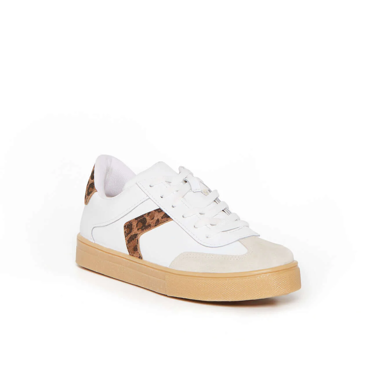 Affirmez votre style avec les sneakers IMAYA, une basket blanche twistée par des empiècements en croûte de cuir à imprimé léopard. Ce modèle made in Italy combine à la perfection allure contemporaine et confort quotidien. La silhouette basse classique est dynamisée par des détails félins et une semelle couleur gomme qui renforce l’effet rétro tendance.