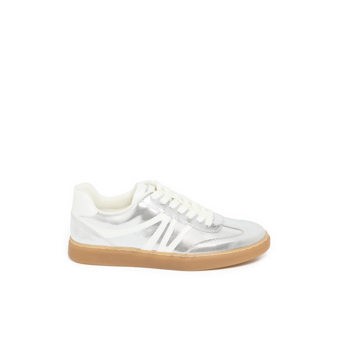 Affirmez votre style avec les sneakers WENZA en cuir argenté, une pièce forte au look résolument tendance. Entre allure urbaine et détails métallisés, cette basket redéfinit les codes du casual chic. Son cuir lisse à effet miroir capte la lumière et attire tous les regards, tout en conservant un esprit épuré grâce à sa semelle camel contrastante. Parfaite pour rehausser un jean ou twister une tenue minimaliste, WENZA conjugue confort et audace sans jamais compromettre l'élégance.